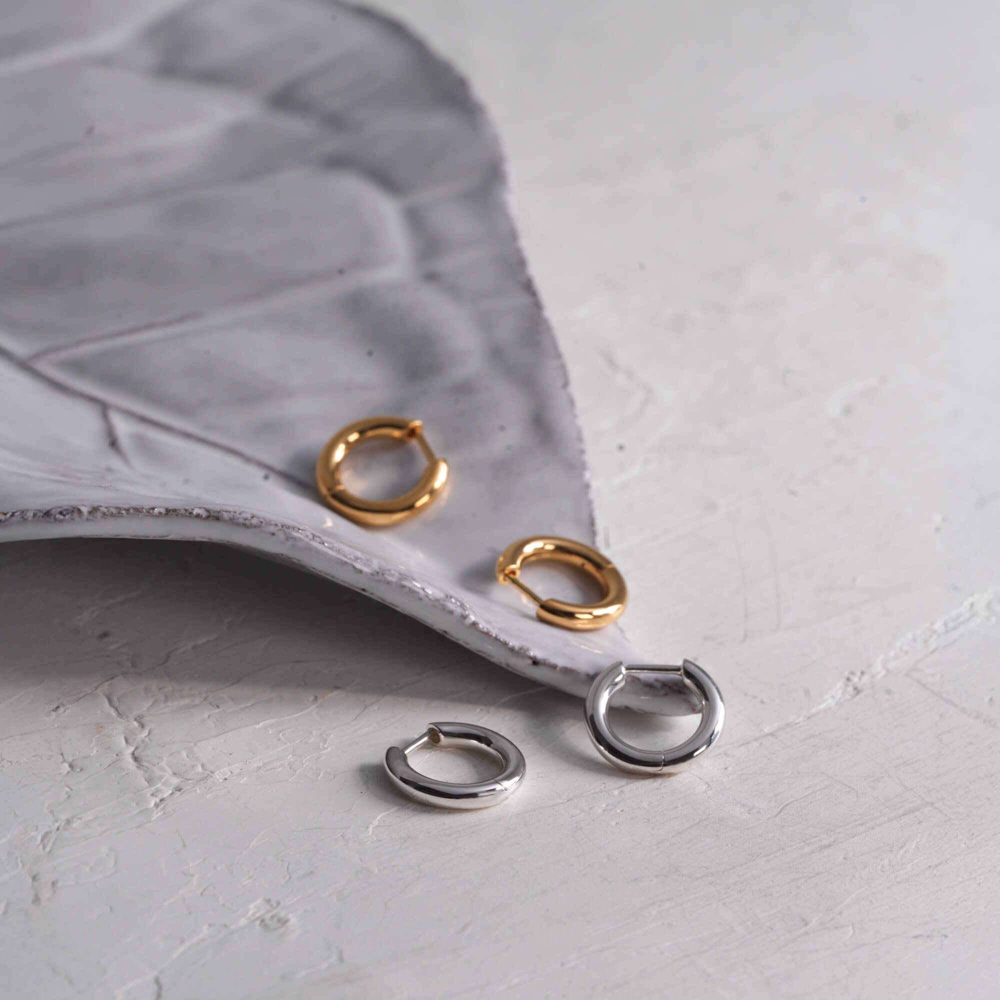 The S size, with a diameter of approximately 12 mm, is modest yet has a three-dimensional thickness. Its minimalist design makes it stand out with its thickness that fits snugly against the earlobe.