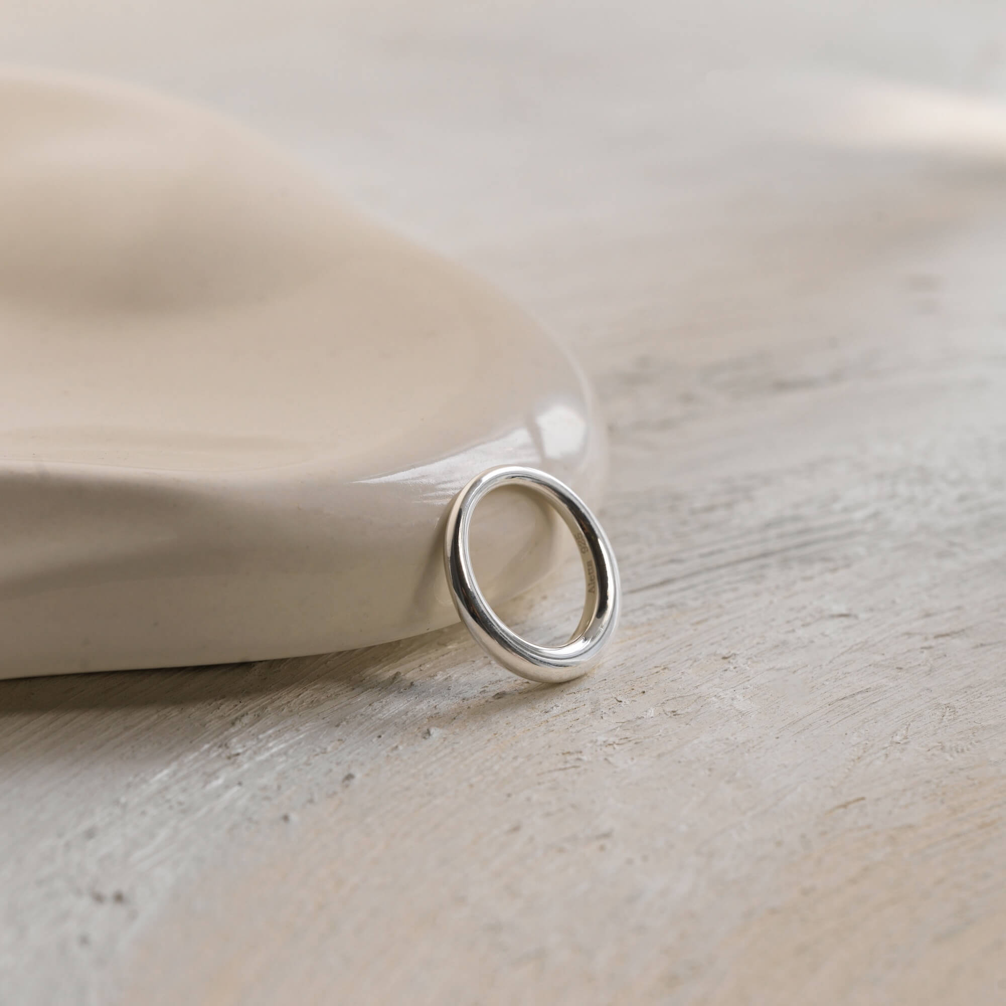The minimalist and elegant form makes it perfect as a main ring on the index finger or as a secondary ring for stacking.