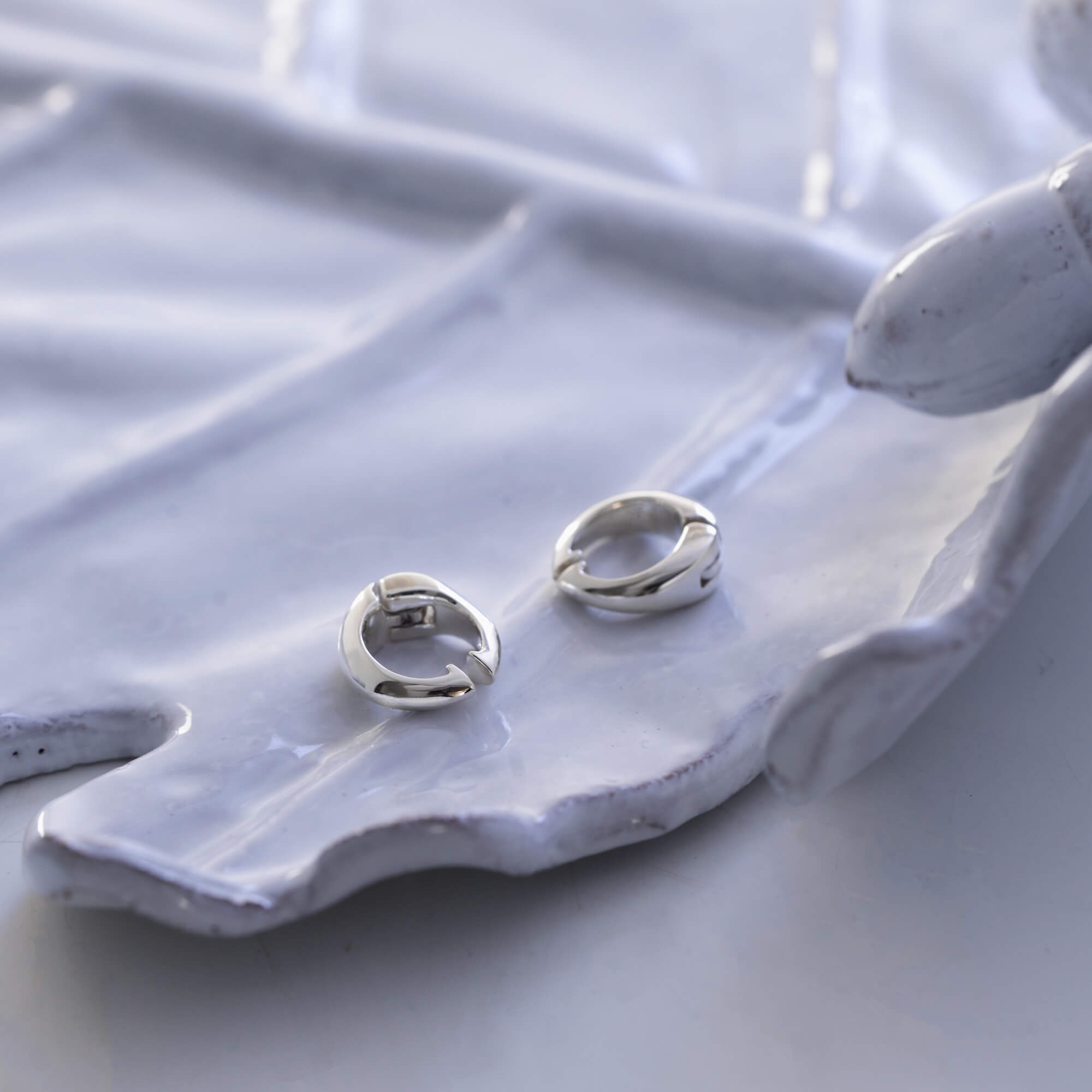 Organic and man-made, graceful and bold. The design of these sterling silver hinged hoop earrings draws inspiration from opposites. These minimalist earrings add a subtle touch of elegance to any outfit.
