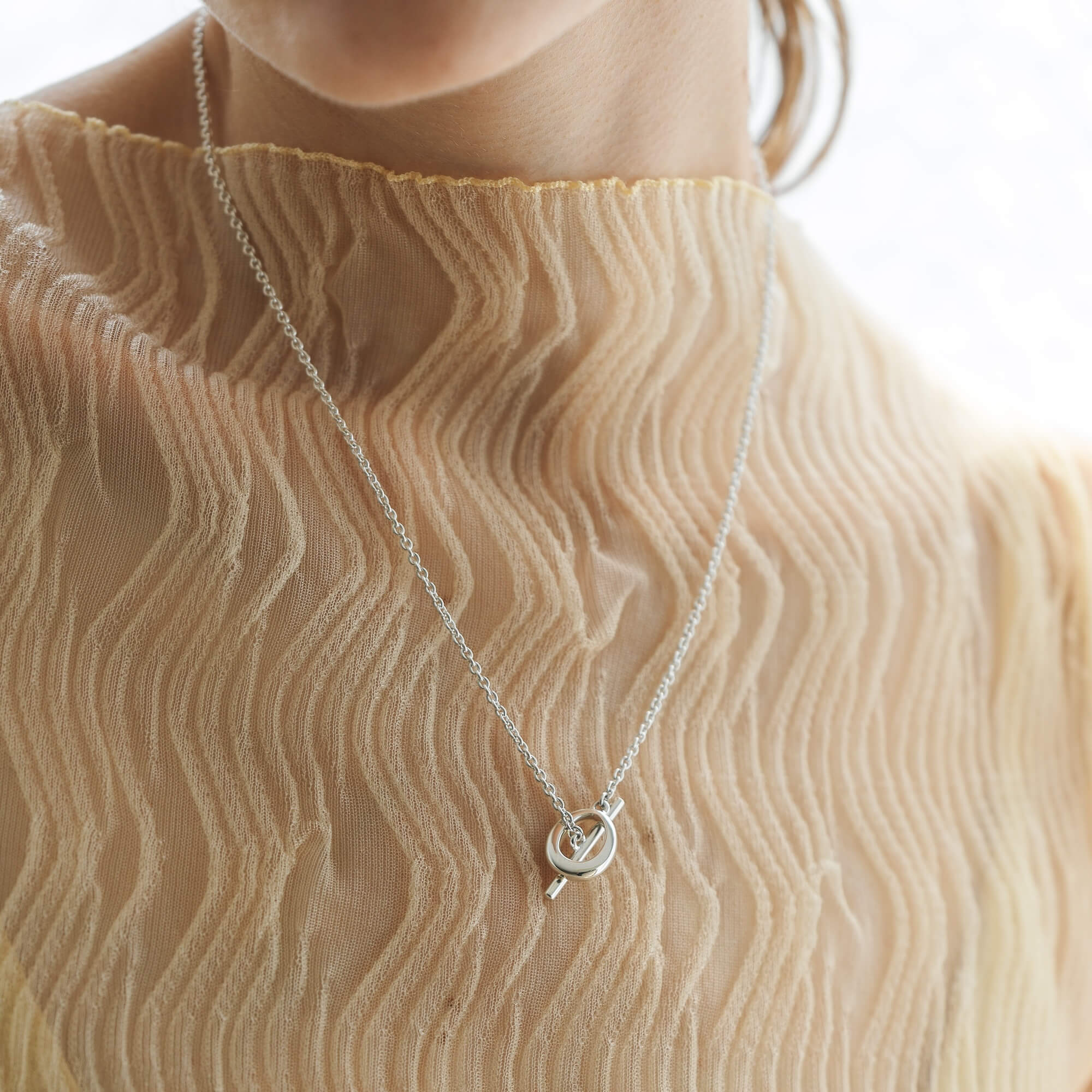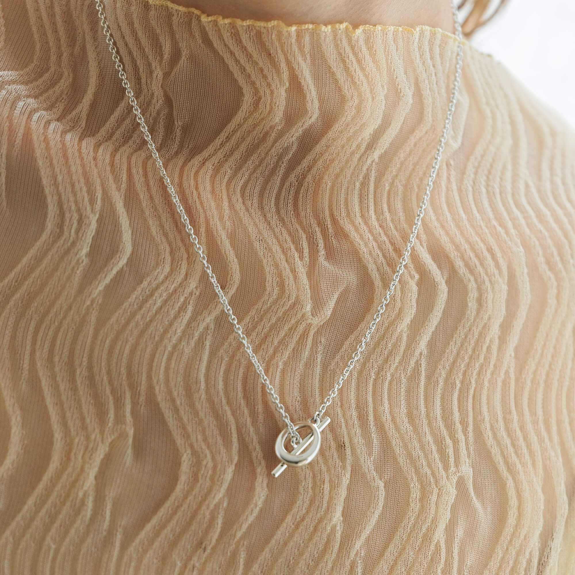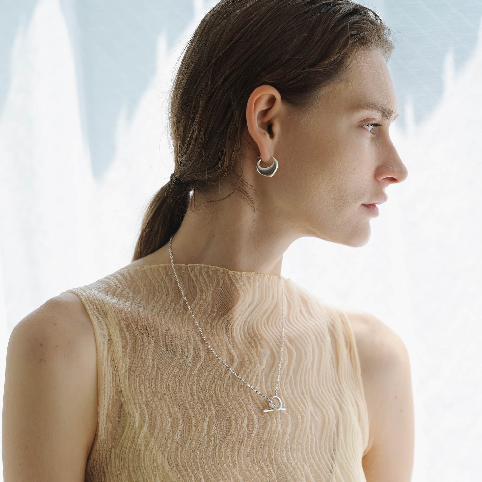 朝露のような雫の美しさからインスピレーションを得たデュードロップネックレスは、繊細なシルバーチェーンと存在感のあるマンテルパーツのコントラストが印象的なデザイン。チェーンをマンテルに一巻きすることで長さを自在に調整でき、スタイリングの幅が広がります。つけっぱなしや金属アレルギーにも配慮さており、ジェンダーを問わず取り入れやすいデザインのシルバーチェーンネックレスです。