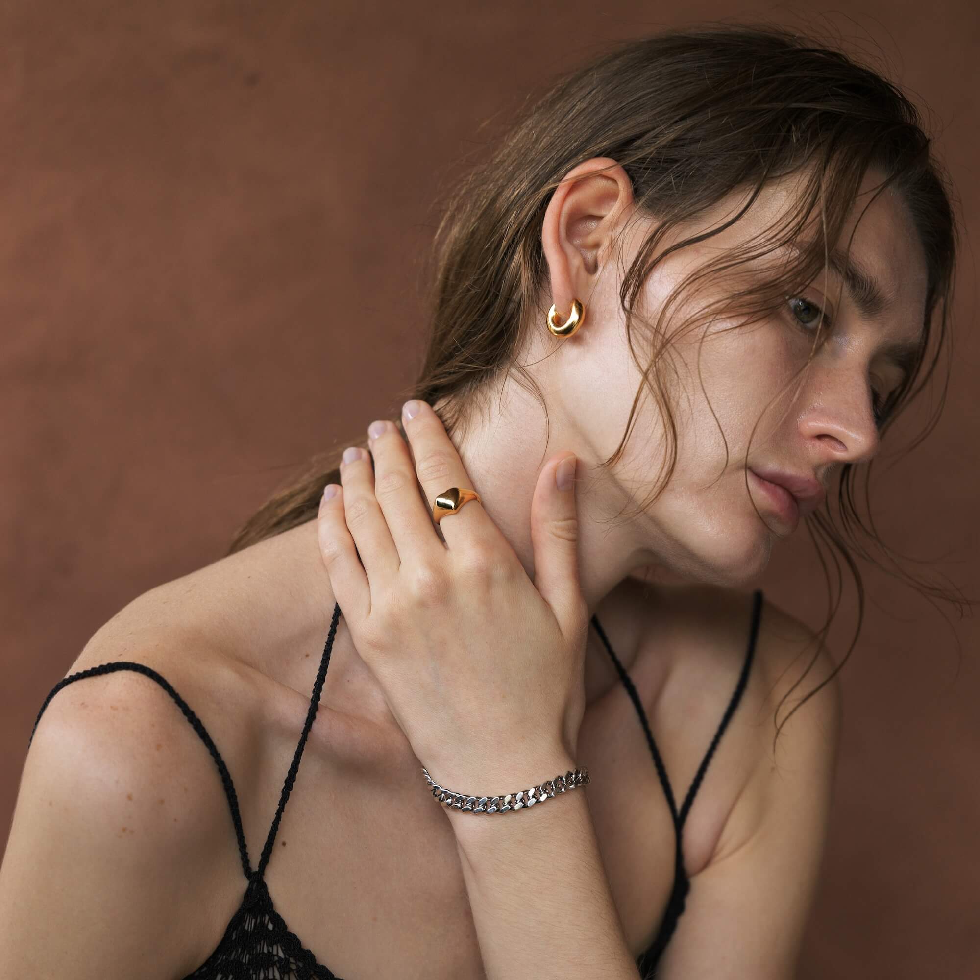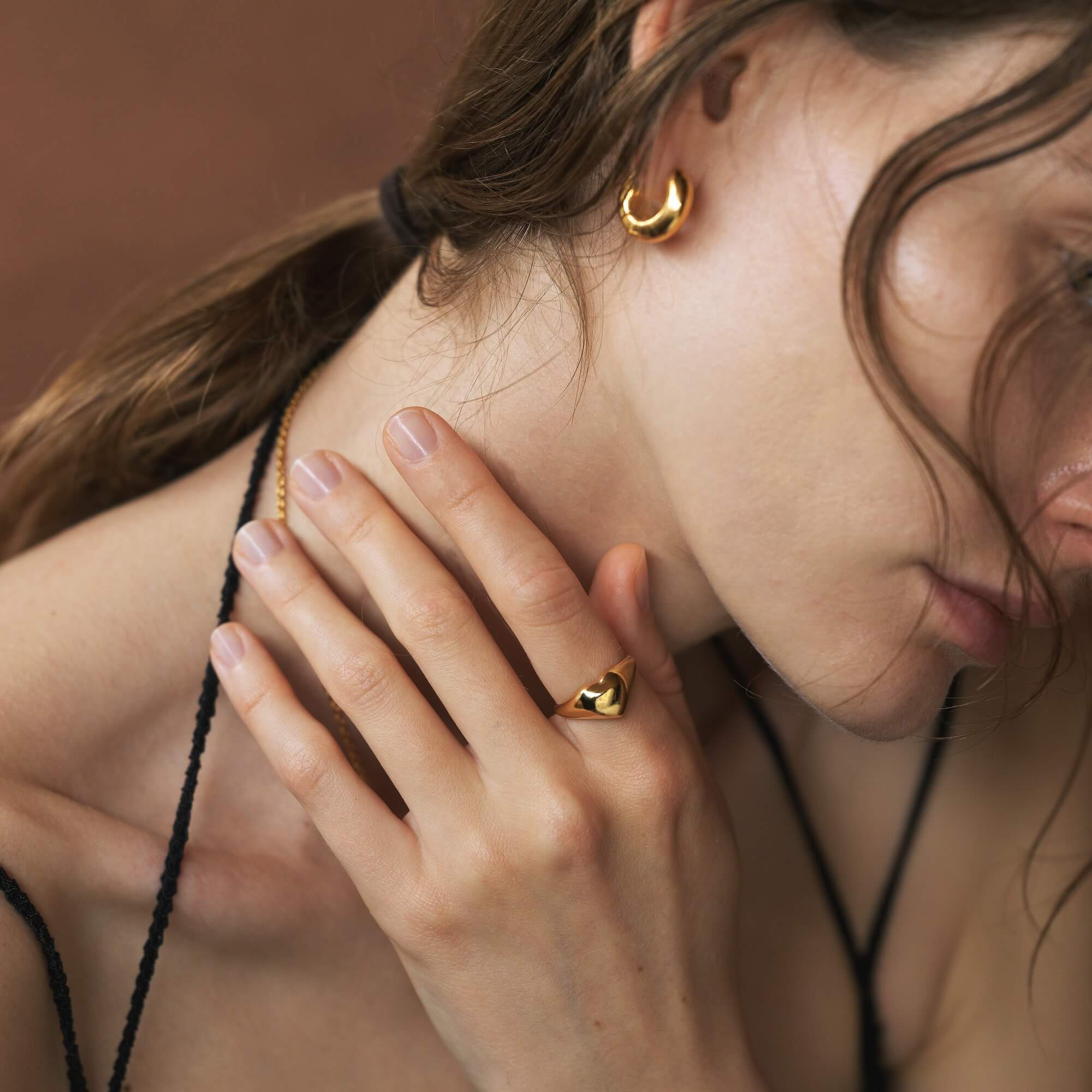 純度92.5%のスターリングシルバー(ニッケルフリー)を採用し、金属アレルギーに配慮しています。ゴールドは国内の専門工房で丁寧に作業を行なった18Kゴールドコーティングです。