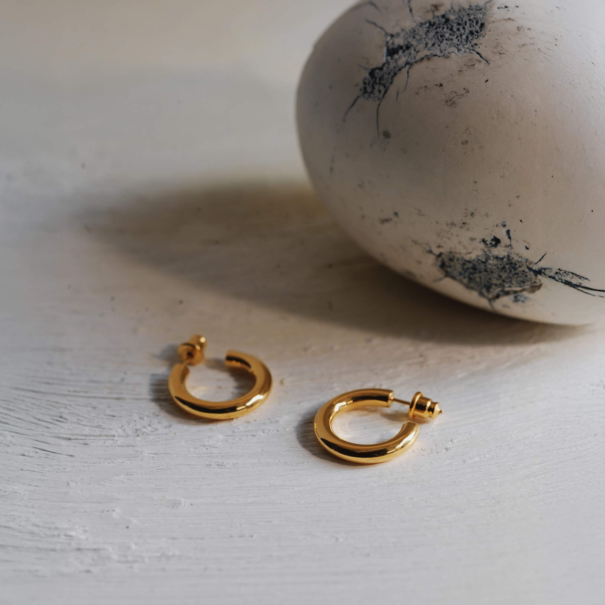 縦のラインを強調する約20mmのオーバルフォルム。丸いフープにはない、すっきりとしたシャープな印象を与え、顔周りをスマートに見せるスタイルアップ効果も期待できます。